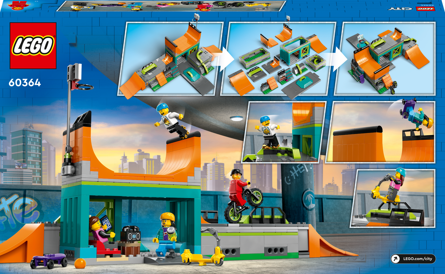 Ümberkujundatav rulapargi mängukomplekt alates 6-aastastele. Kombineeritavate rambimoodulite, BMX-ratta, rula, rulluiskude ja nelja minifiguuriga.