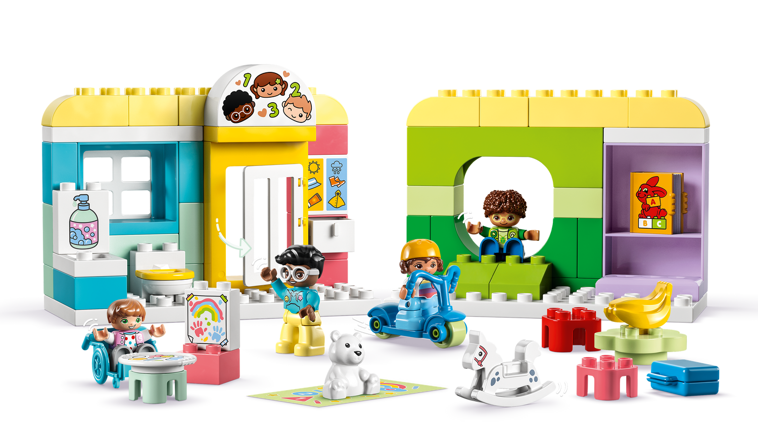 Alates 2-aastased väikelapsed saavad nautida sõpradega lõbutsemist komplektiga LEGO DUPLO Town Elu päevakeskuses (10992).