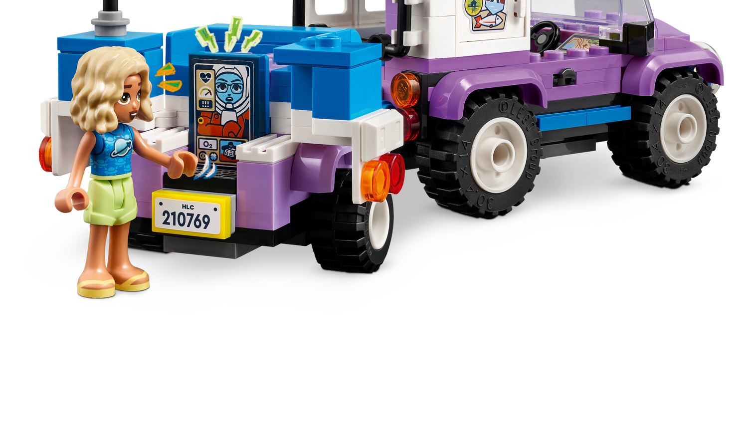 Mängukomplekt LEGO® Friends: Tähevaatluse matkaauto sisaldab kokkupandavat 4x4 sõidukit, mänguteleskoopi, tarvikuid ja kolme LEGO Friends tegelaskuju.