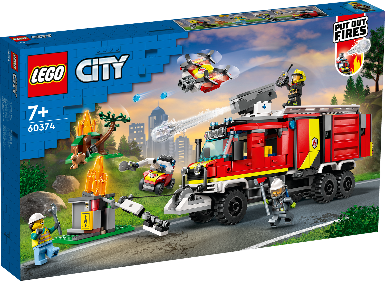 Detailiderohke LEGO® City tuletõrjemängukomplekt, milles on moodne, rohkete lahedate funktsioonidega tuletõrjeauto, kolm minifiguuri ja palju lahedaid tarvikuid.