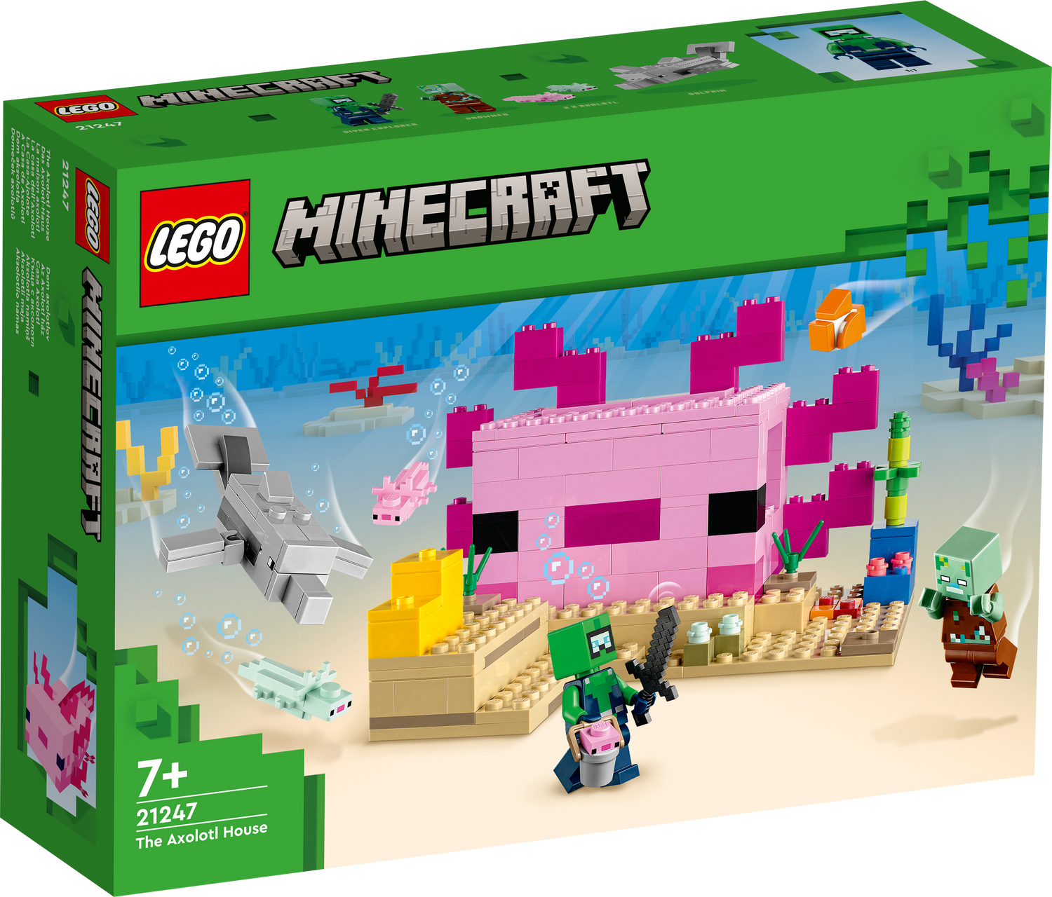 LEGO Minecraft Aksolotli maja (21247) toob Minecrafti loomingulise ehituse ja fantaasiarikkad tegevused mängijate jaoks reaalsesse maailma.