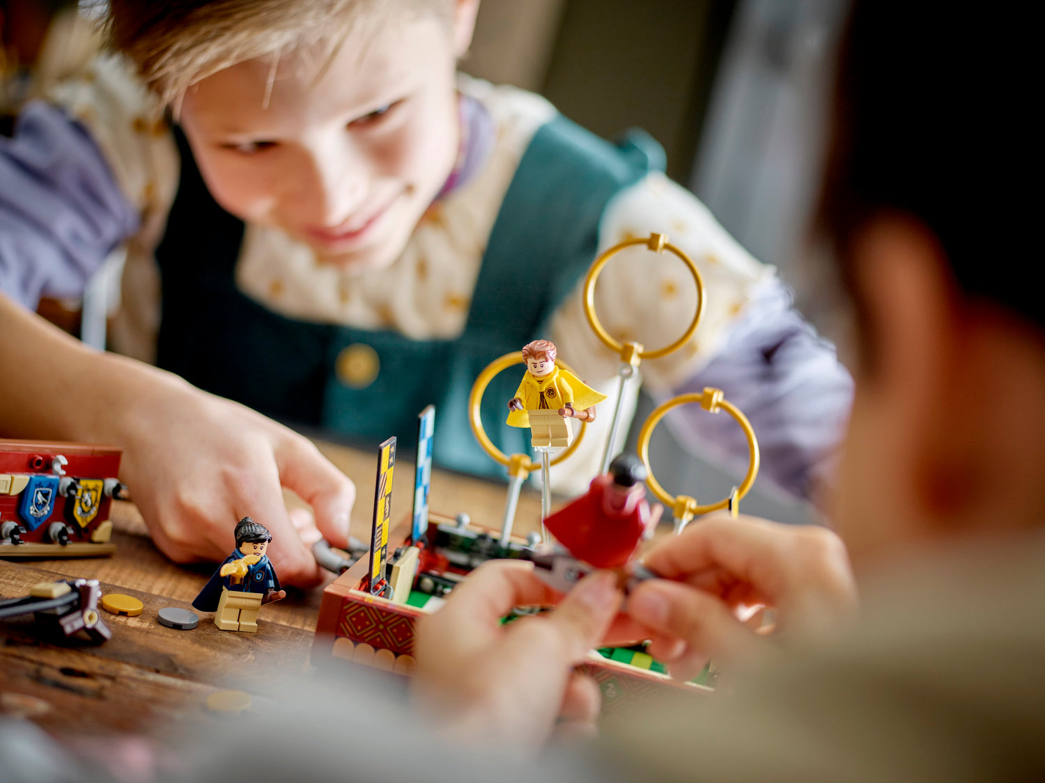 Harry Potter™-i fännid saavad mängida lendluudpalli LEGO® klotsidest mängukohvriga, mis avaneb lukust, et paljastada lendluudpalli mänguväljak ja kohandatavad minifiguurid.