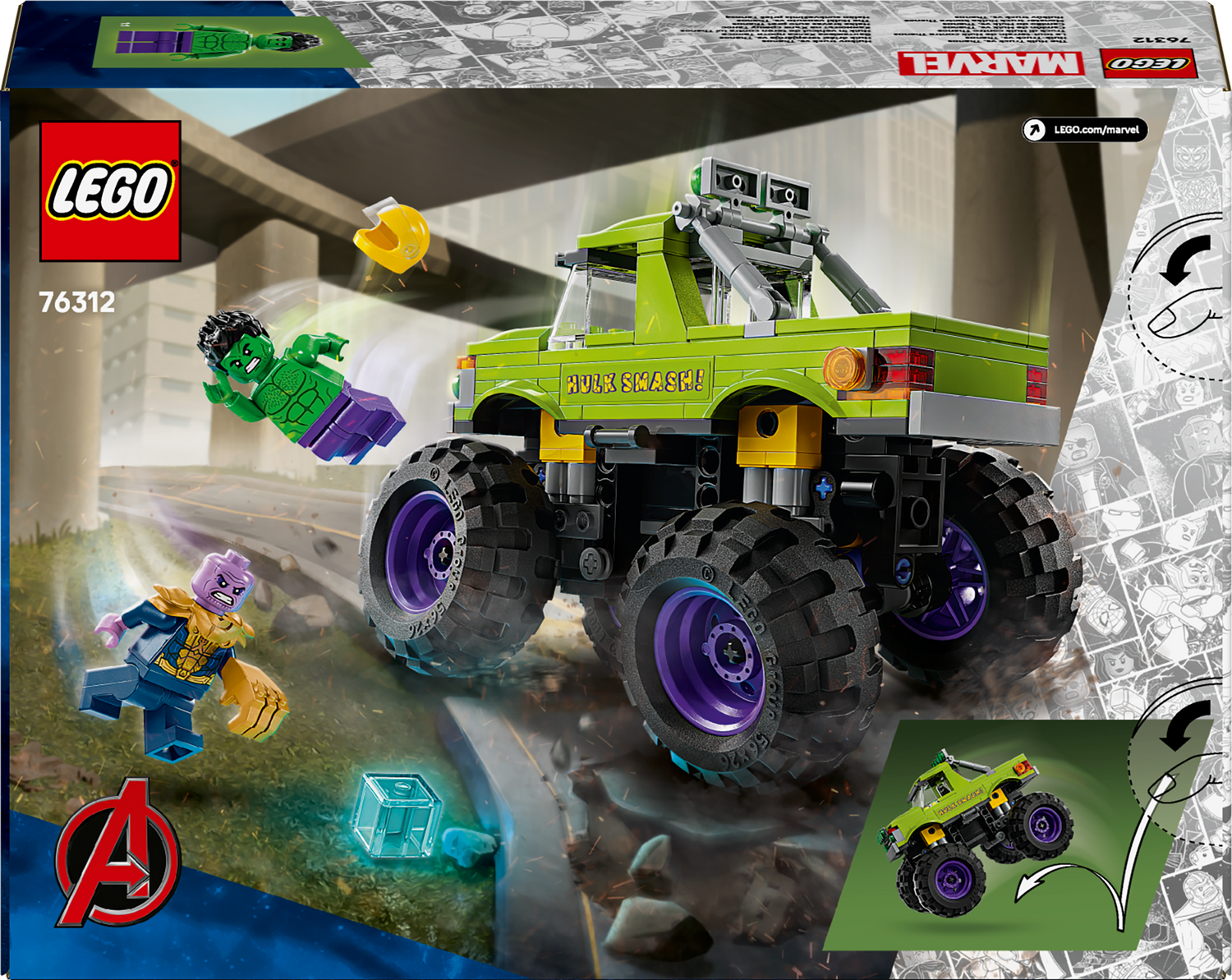 LEGO® ǀ Marvel The Hulki veoauto vs. Thanos – kokkupandav laste megaveok amortisaatoritega on lahe loominguline superkangelase kingitus lastele.
