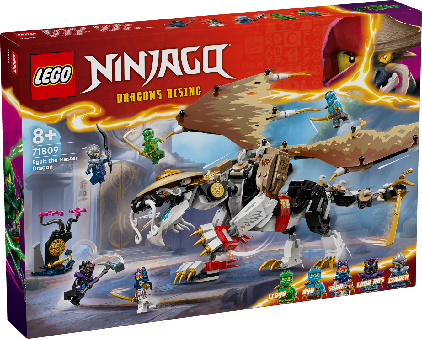 Imeline LEGO® NINJAGO® Valitsejadraakon Egalti ninjamängukomplekt, mis sisaldab suurt kokkupandavat LEGO draakonit ja viite NINJAGO tegelaskuju minifiguuri.