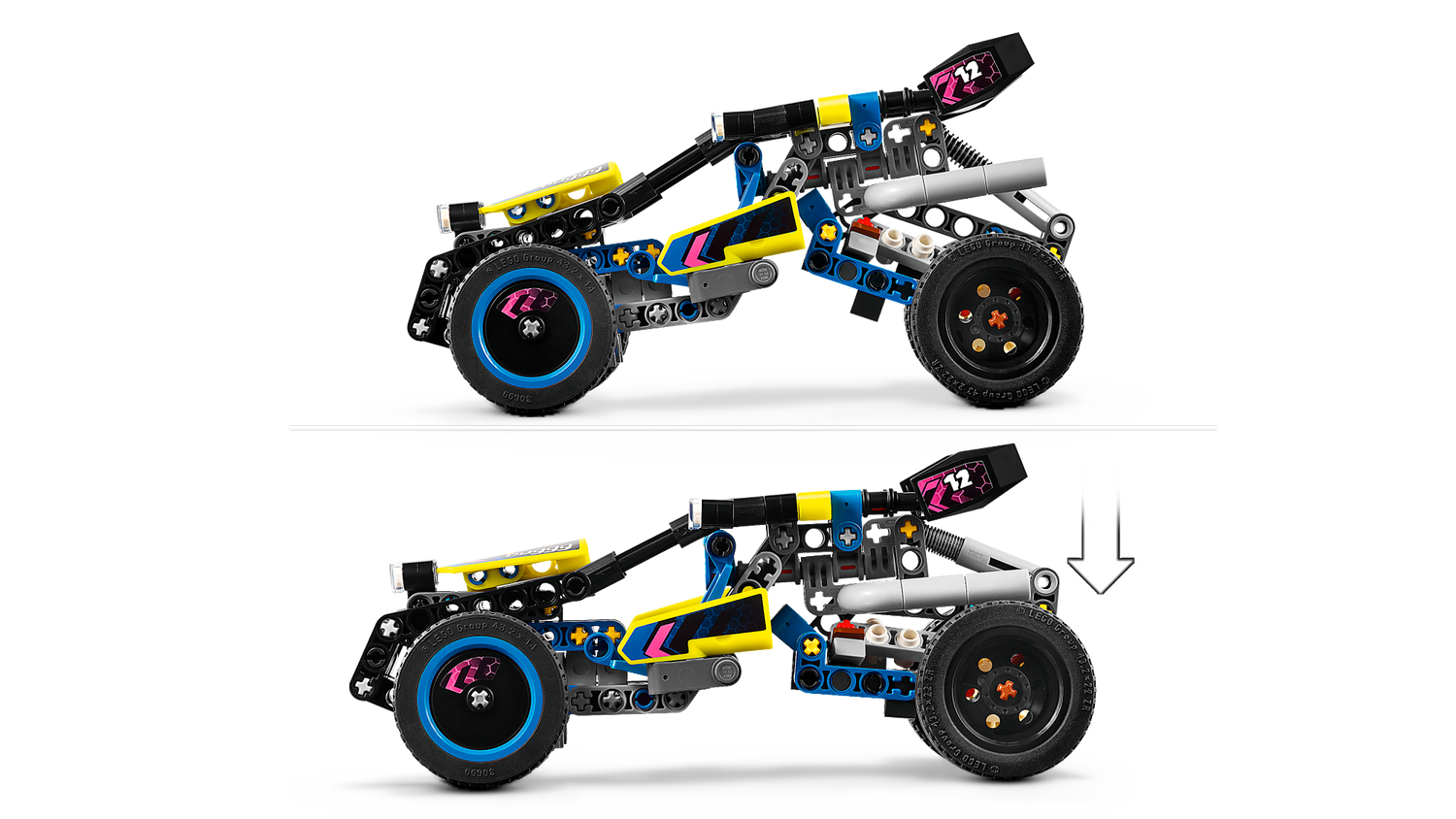 Inspireeri põnevaid mänge, kui lapsed, kes armastavad sõidukimänguasju ja autosid, ehitavad LEGO® Technic maastiku võidusõidubagi.