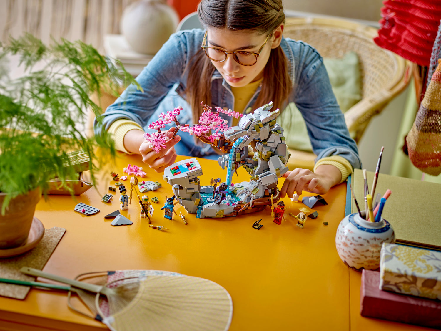 LEGO NINJAGO Draakonikivi pühamu mänguasi koos kuue NINJAGO minifiguuriga nii mängimiseks kui ka esitlemiseks.