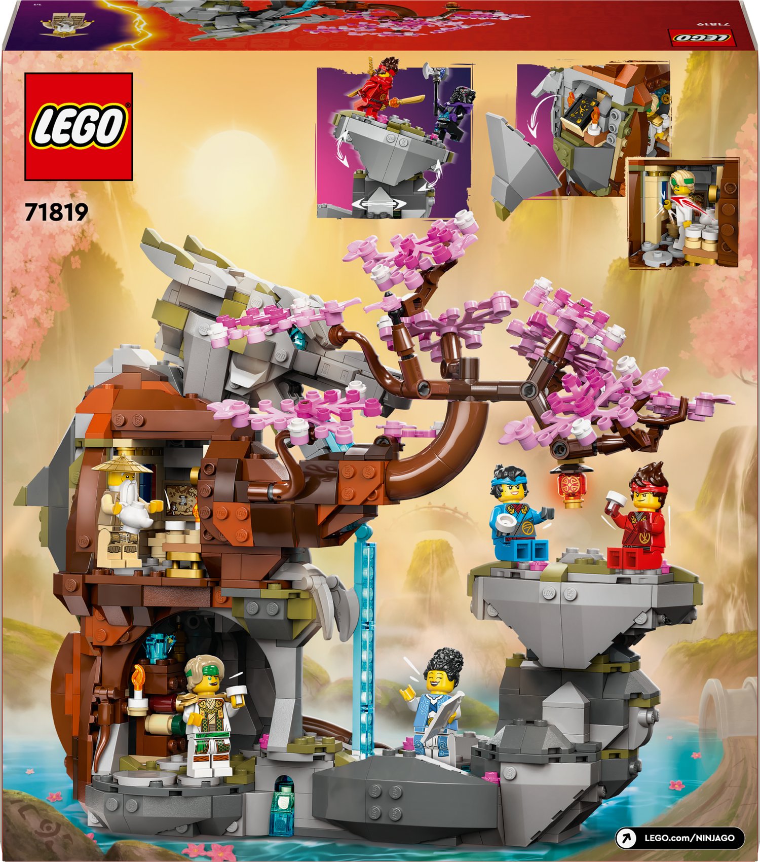 LEGO NINJAGO Draakonikivi pühamu mänguasi koos kuue NINJAGO minifiguuriga nii mängimiseks kui ka esitlemiseks.